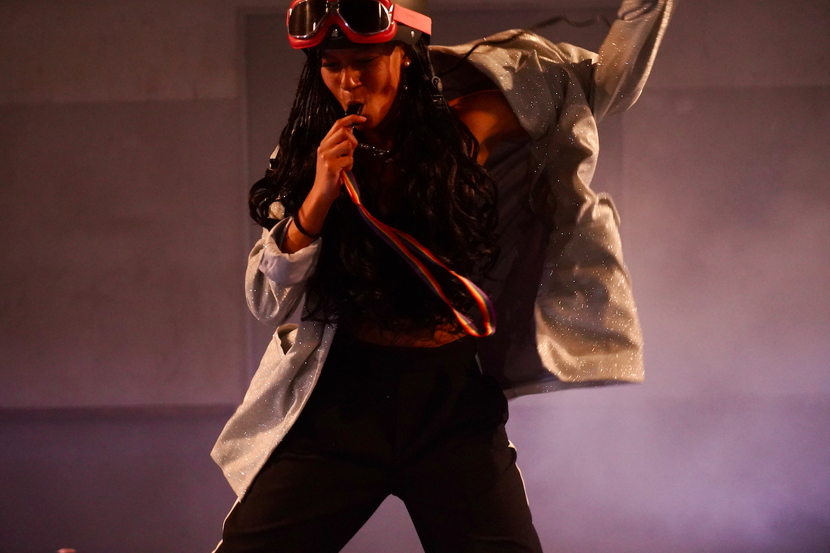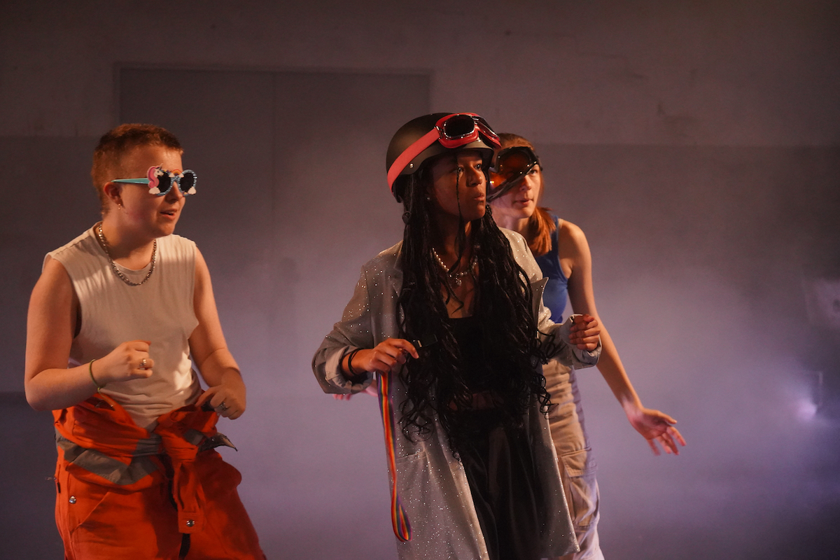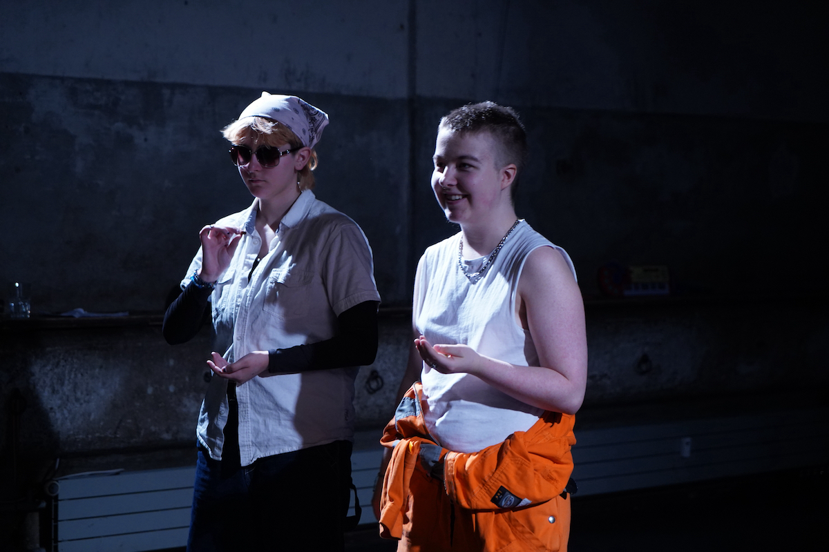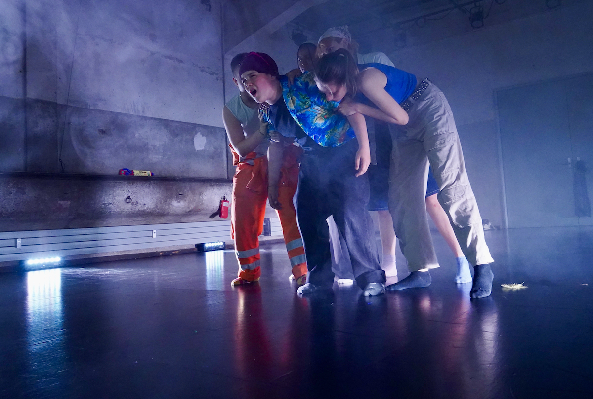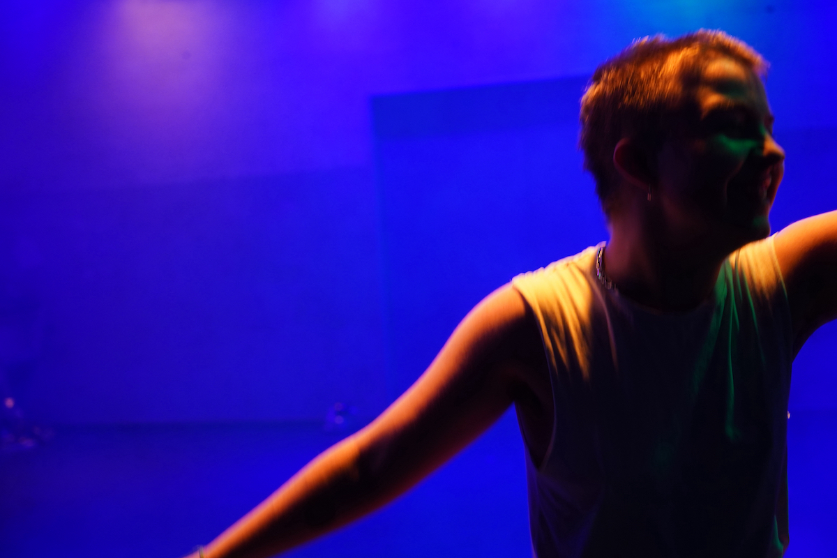 Ich beweg mich über die Bühne, verfliesse mit den anderen, verrenke meinen Körper in ungewohnte Formen, stehe plötzlich da und frag mich, wer ich bin. Dann habe ich mich selbst erfunden und gefragt, ob ich einfach das sein kann, was ich hier präsentiere.