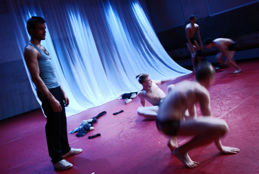 Der belgische Choreograph Ives Thuwis hat zum dritten Mal eine Tanztheaterproduktion am jungen theater basel herausgebracht. Gemeinsam mit sieben jungen Männern hat er sich den Fragen gestellt: Wie wird ein Mann ein Mann? Und was ist das überhaupt ein Mann? Verschiedene genetische, kulturelle und sonstige Dispositionen erzeugen verschiedene Anforderungsprofile. Während man sich in Mitteleuropa weit von reglementierenden Bildern entfernt glaubt; ja manchen sogar ein leichtes Unbehagen, über zu viel Gestaltungsfreiheit beschleicht, ist in anderen Kulturen ganz klar, wie ein Mann zu sein hat. Dass das auch nicht unbedingt nur beglückend ist, steht ausser Frage. Aber woran halten oder soll alles im Fluss bleiben? Und wird Mann dann nicht irgendwann weggeschwemmt?
