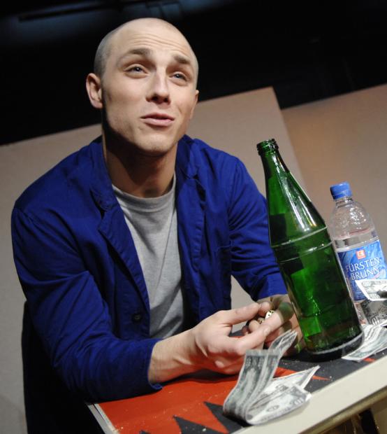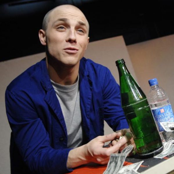 Ausnahmsweise gibt es ein Gastspiel im jungen theater basel, noch dazu am letzten Wochenende der Sportferien. Der “unvergessliche Abend” – wie ihn die Hallenser Presse bezeichnet – fällt auch etwas aus dem Rahmen des normalen Angebotes des jtb. Denn die Inszenierung wurde nicht speziell für Jugendliche erarbeitet. Und trotzdem gehört die Vorstellung in kein anderes Theater der Stadt. Denn der, der den Abend ganz allein bestreitet, ist im jungen theater basel einmal sehr zu Hause gewesen. In zwei Inszenierungen von Sebastian Nübling (LIEB MI! und HELD DER WESTLICHEN WELT) war Endre Holéczy bereits hier zu sehen. Mittlerweile hat er sein Schauspielstudium in Leipzig abgeschlossen und ist in Tübingen im Engagement. Mit seiner letzten Produktione aus der Schauspielschulzeit gastiert er nun da, wo er entschied, den Beruf des Schauspielers zu ergreifen.