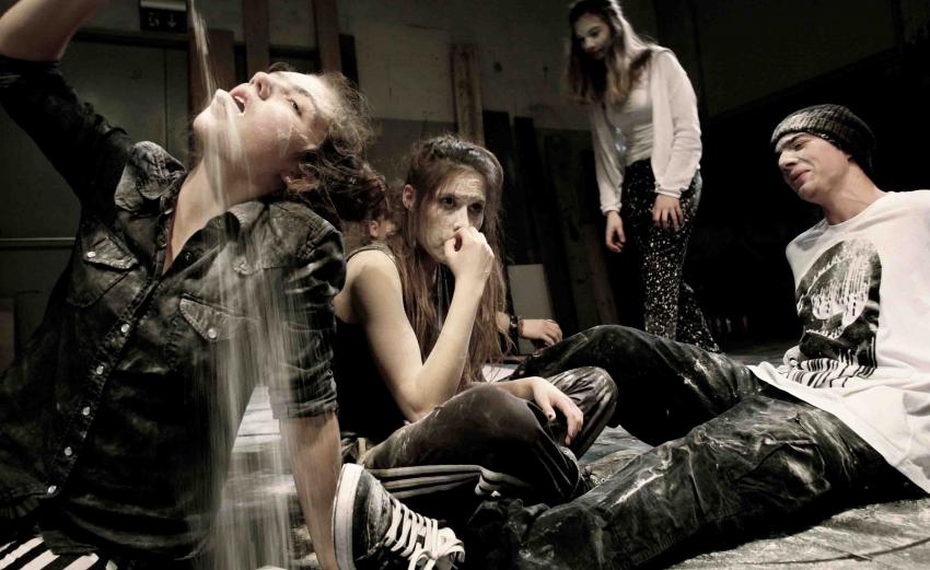 “Morning” ist ein düsteres, starkes Stück voller Energie und einer grossen Frage: Was ist, wenn nichts einen Wert hat? Wenn unser Handeln keine Konsequenzen hat? Wenn uns die Dinge und Menschen um uns gleichgültig werden? Von düsteren Dubstep-Klängen untermalt und mit Mehl bedeckt fragen uns sechs Jugendliche nach dem Tod, nach dem Wert des Todes und nach dem Wert des Lebens. Und wie es Sebastian Nübling gerne und oft macht, bringt er viel Bewegung in diese Inszenierung ein. Die physische Präsenz der Schauspieler ist beeindruckend. Was die Sprache nicht kann, drückt der Körper aus – und umgekehrt. Die Schauspieler sind da. Sie stehen auf der Bühne und fordern den Zuschauer heraus.