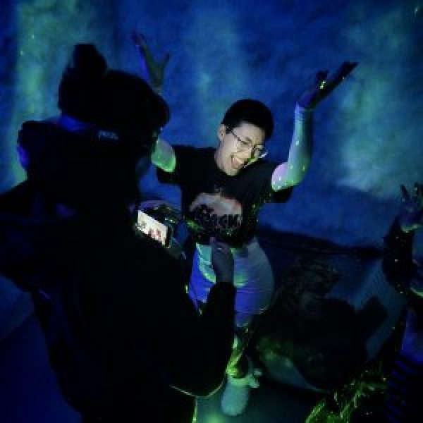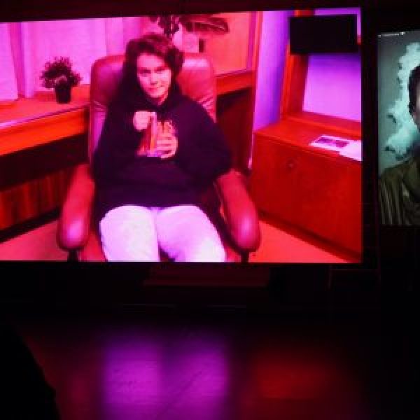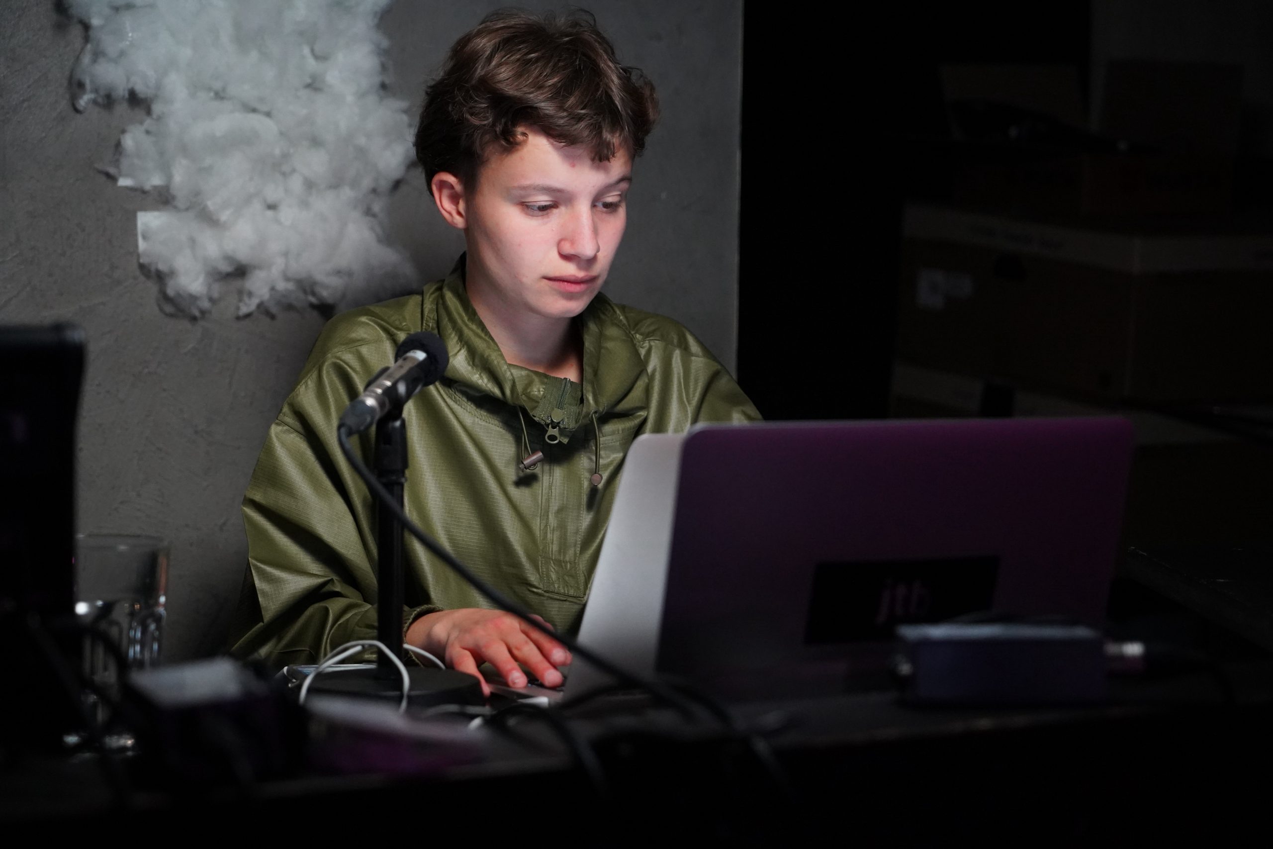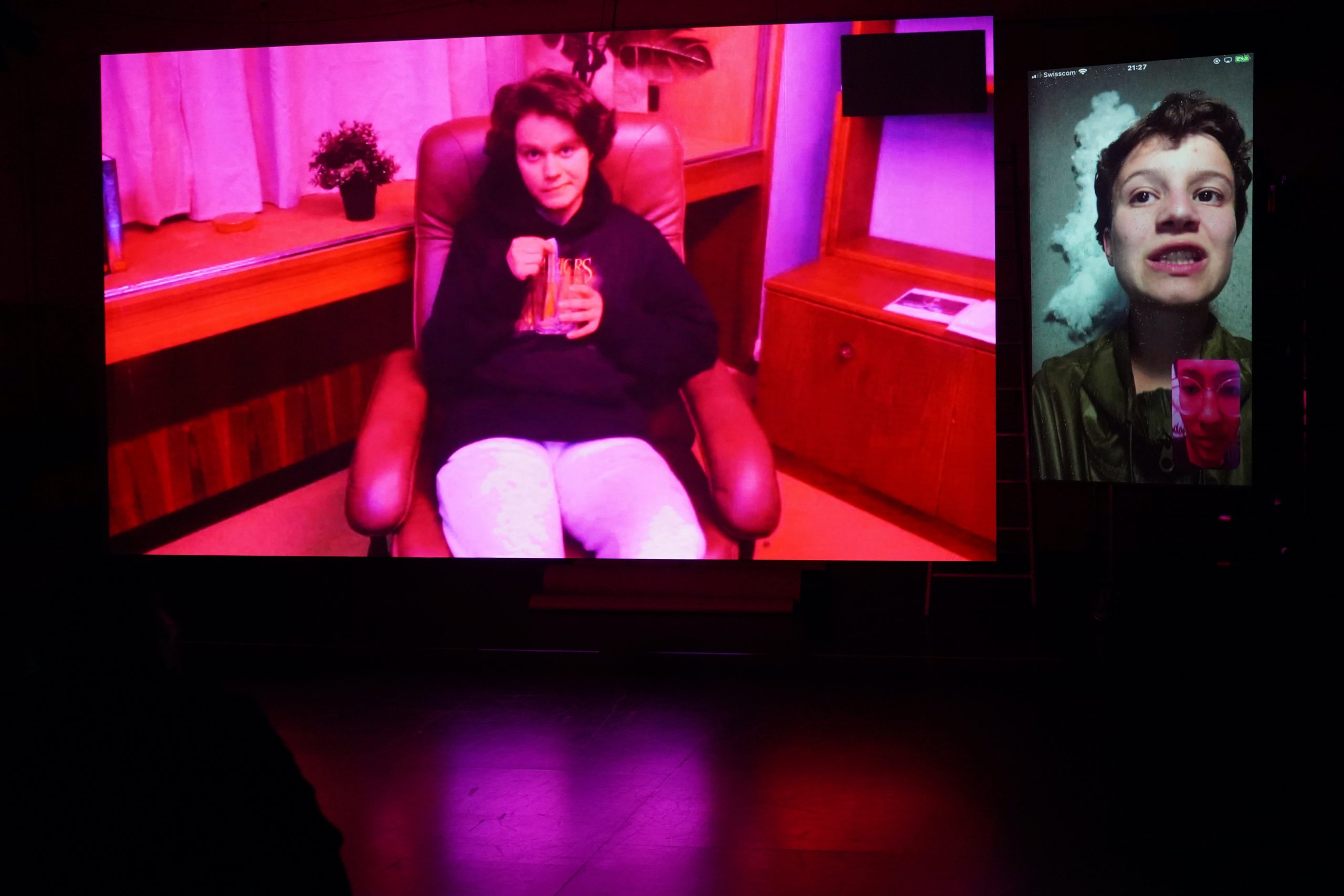 “Hallo zäme, schön dass ihr do sind! POV: isch kei klassische Theaterobe, sondern e Mischig us live Film und Game. Im Verlauf vom Obe gits e paar Momänt, wo ihr chönned entscheide, wies witer goht.” Mit diesen Worten werden die Besucher:innen von Adi im jungen theater begrüsst.