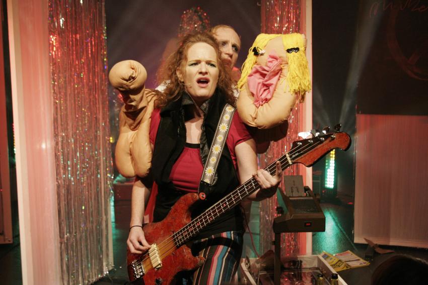 Hier werden die Dinge beim Namen genannt. … Bei den jungen Zuschauern der Schulvorstellung gibts denn auch erst mal staunende Gesichter und nervöses Kichern. Herzhaftes Lachen hört man in den ersten Minuten vor allem von der Lehrerschaft. Doch es geht nicht lange, und die vier rockenden Doktoren haben mit Gitarre, Bass und Schlagzeug, mit losem Mundwerk und offenem Herzen auch den Rest des Publikums erobert. Aufgeklärt wird gründlich und mit allem, was zur Verfügung steht: Mit Wandtafel und Hellraumprojektor, mit einem Bilderbuch des Kamasutra, mit den beiden Handpuppen Pussy und Pimmel, mit kruden Modellen der weiblichen und männlichen Geschlechtsorgane, gebastelt aus Ballons, Schläuchen, Notenständer und Tuba. Später werden Mitspieler als Geschlechtsorgane verkleidet: Dann stürmt ein Pimmel mit Sturzhelm auf den als blonde Pussy verkleideten Assistenten los – und kommt leider etwas zu früh.