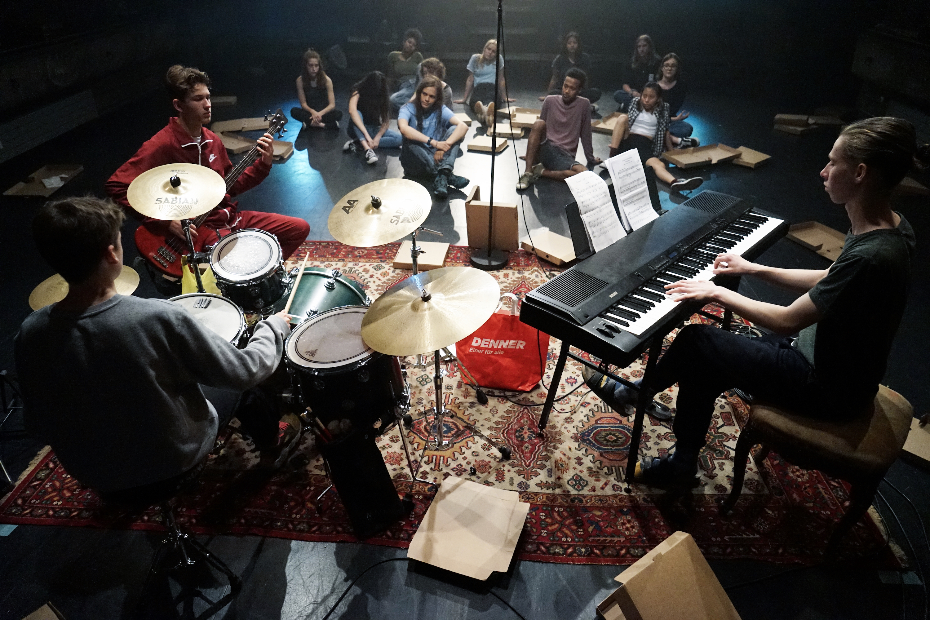 Die Stadt. Ihr Untergrund. Ein Keller. Schlagzeug, Piano, Bassverstärker und unzählige Kabel kreuz und quer. Vier junge Menschen sind gerade mitten in einer wichtigen Probe für ihren ersten grossen Auftritt ihrer Band, und es kommt – gänzlich unpassend – unerwarteter Besuch. Wem gehört dieser Keller eigentlich? Und wäre es nicht besser gewesen, für immer hier unten zu bleiben und die Tür fest zu verschliessen?