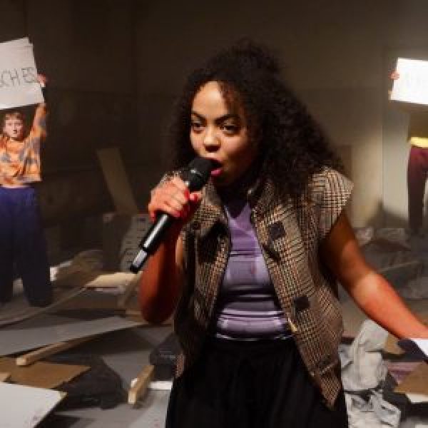Wir leben hier und heute und sind doch verbunden mit der ganzen Welt und der langen Geschichte des Kampfes um Gerechtigkeit. Wir erheben unsere Stimmen für die vielen und kämpfen mit unvergesslichen Reden und erhobenen Fäusten. Wir werden Parolen ausprobieren, um Worte ringen und mit Blicken sprechen. Und wir riskieren es, uns um Kopf und Kragen zu reden. Versprochen!