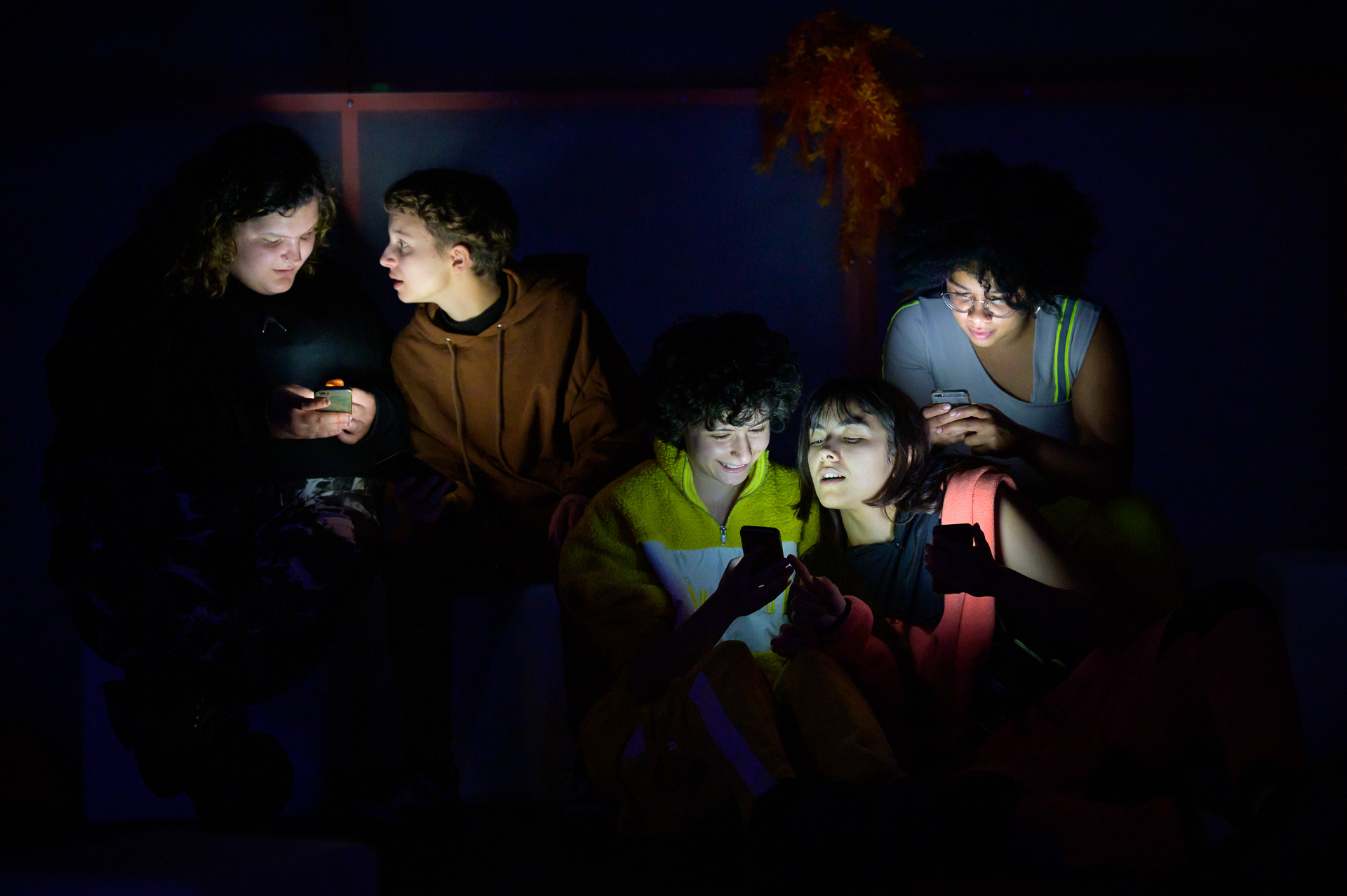 Das Bild zeigt sechs leuchtende Menschen auf dem Sprung in ein neues Bild, eine neue Geschichte, eine neue Zeit. Hinter ihnen liegen Jahrhunderte, in denen vor allem weiblich sozialisierte Menschen [im Folgenden Frauen genannt] ausgiebig angesehen, virtuos portraitiert und treffend betitelt wurden. Frauen, die gerettet werden. Frauen mit Perlenohrringen. Frauen, die sich mit anderen Frauen um Männer streiten. Frauen, die taktvoll weggehen. Frauen, die verlegen lächeln. Frauen, die sich unglücklich ausruhen. Frauen, deren Kopf es nicht aufs Bild geschafft hat. Frauen, die auf Kühlerhauben liegen. Wir kennen sie alle. Wir haben sie alle gesehen. Gemeinsam mit sechs jungen Baslerinnen befragt das Kollektiv Henrike Iglesias in dieser Stückentwicklung das emanzipatorische, empowernde, politisierende Potenzial von Selbstportraits und -erzählungen on- und offline: Welche Versionen von uns wollen wir teilen? Wie und womit füllen wir Räume? Wie beschreiben wir die Welt? Was wollen wir von ihr? Wer hört uns, wer folgt uns, wer verbindet sich mit uns? Und wie starten wir gemeinsam eine Revolution?