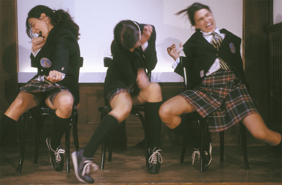 Vierzäh isch e genials Alter. Ich ha richtig erwachse könne si oder richtig-kindisch. Es isch ganz uf mini Lune acho – und ich bi zimlich lunisch gsi – Unglücklicherwies han ich die unteri Hälfti vo miner Schueluniform ghasst: dr Rock! Ich main, was cha mä mit däm Ding scho mache? Cha me dr’mit Fuessball spiele? Jo scho, aber du muesch uf die Slip ufpasse! Cha me dr’mit uf eme Stuel hogge, glangwiilt und rebällisch wie dr James Dean? Klar, aber du muesch uf die Slip ufpasse! Du hesch immer miesse uf din Slip ufpasse. Und natürlich hän di d’Jungs dr’bi unterstützt, die hän nämlich au ganz genau uf di Slip ufpasst.