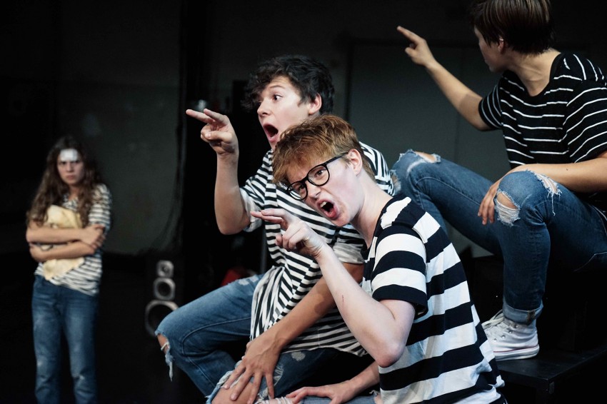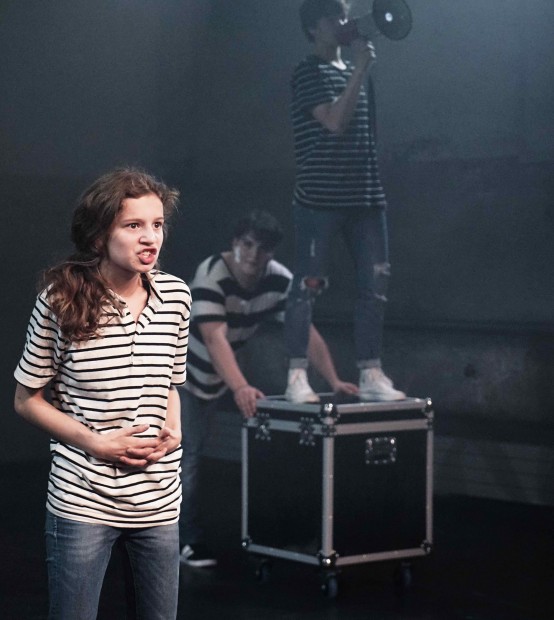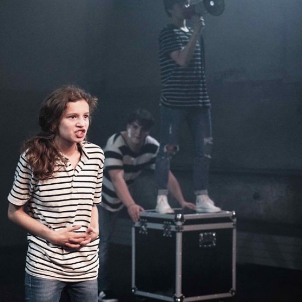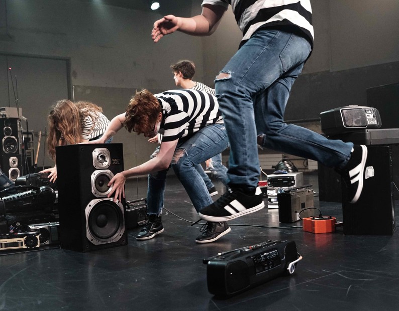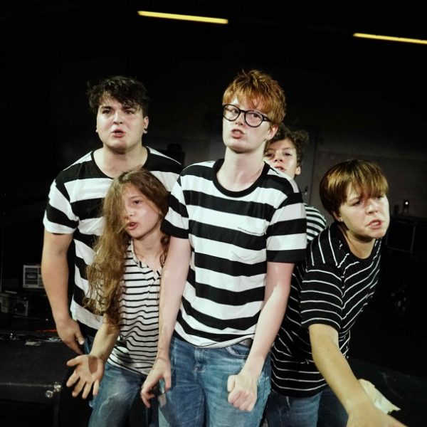 Suna Gürler hat für ihre Inszenierung von TSCHICK ein Mischung aus Erzählen und Spielen entwickelt. Für die Inszenierung des grossartigen Romanes von David Grossman muss sie auf die eindeutige Besetzung der Figuren verzichten. Es wäre regelrecht falsch, wenn sich das Publikum kein eigenes Bild machen kann. Die fünf Spieler*innen wechseln darum ständig die Rollen, um so die Fantasie des Publikums herausfordern. WOHIN kann also auch als Aufforderung verstanden werden, die allgemeine Fixierung auf Bilder einmal gegen die Begegnung mit Taten – noch dazu vermittelt durch eine packende Erzählung – zu tauschen.