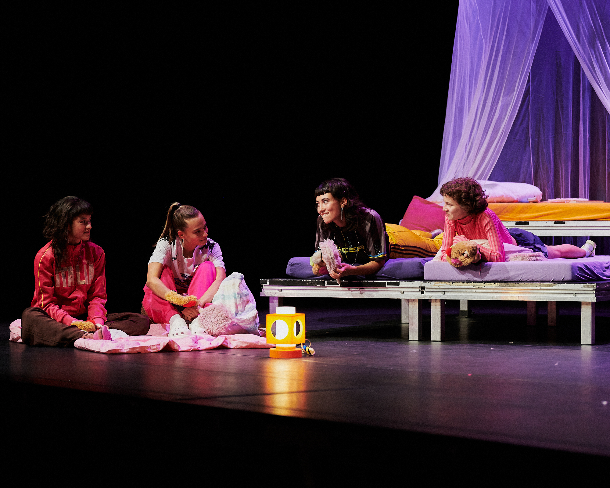 What’s the hottest Gossip? Inwiefern ist Gossip eine queerfeministische Praxis? Was denken wir über den neuen Crush von unseren Friends? Was macht eine Gruppe von Friends zu einem Safer Space? Was kann diesen Safer Space gefährden? Wie heilen nach einem Heartbreak? Kann es in einer Chosen Family Breakups geben? Sind das alles nur Coming-of-Age-Fragen oder haben diese Diskussionen vielleicht doch ein politisches Potenzial? Das alles und noch mehr wird bei YOU CAN BE MY CRUSH auf der Bühne verhandelt.